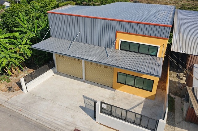 อาคารสร้างใหม่ออกแบบใช้งานได้จริง ประกอบด้วยพื้นที่สำนักงาน 1 ห้อง ห้องนอน 1 ห้อง ห้องน้ำ 2 ห้อง พื้นที่เก็บสินค้ากว้าง หลังคาบุฉนวนกันความร้อน พร้อมพัดลมระบายอากาศ ช่วยลดความร้อนภายใน จอดรถด้านหน้าอาคารได้หลายคัน ตั้งอยู่ติดถนน เข้าออกสะดวก เหมาะสำหรับเป็นสำนักงานควบคู่คลังสินค้า