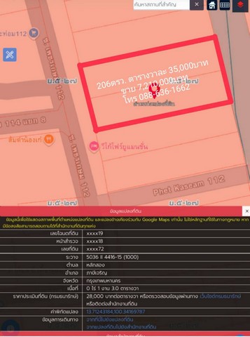 ขายที่ดิน 206 ตรว. พิกัด บางแค เพชรเกษม หนองเขม ภาษีเจริญ พุทธมณฑล ทำเลดี ติด แมนชั่น ใกล้ ห้าง , ตลาด , โรงเรียน , มหาลัย