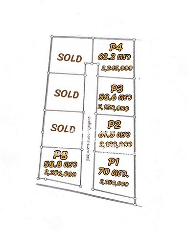 - P.8: 58.8 ตร.ว. = 2,250,000 บาท (ราคาบ้าน พร้อมเฟอร์นิเจอร์ = 2,575,000 บาท)